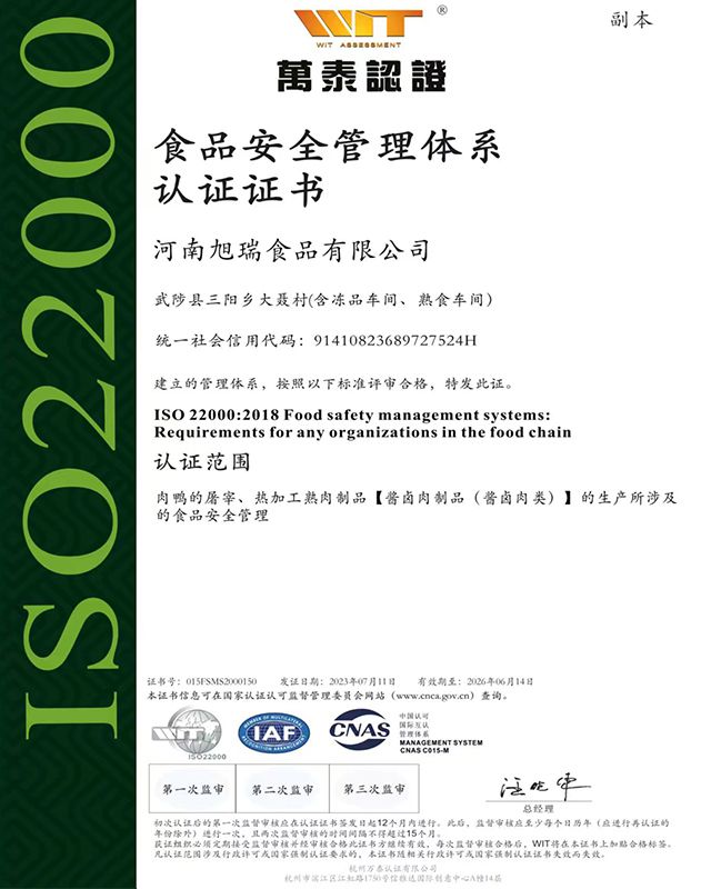 公司累計(jì)投資1.5億元,建成現(xiàn)代化屠宰加工生產(chǎn)基地,引進(jìn)先進(jìn)成套生產(chǎn)線,達(dá)到國內(nèi)領(lǐng)先生產(chǎn)加工水平。具備年屠宰2000萬只肉鴨生產(chǎn)能力。擁有儲存量3000噸的智能化,數(shù)字化冷鏈倉儲.產(chǎn)品分別通過ISO9001質(zhì)量管理體系、ISO22000食品安全管理體系和HACCP管理體系認(rèn)證,獲得綠色食品認(rèn)證和出口食品生產(chǎn)企業(yè)備案證明。